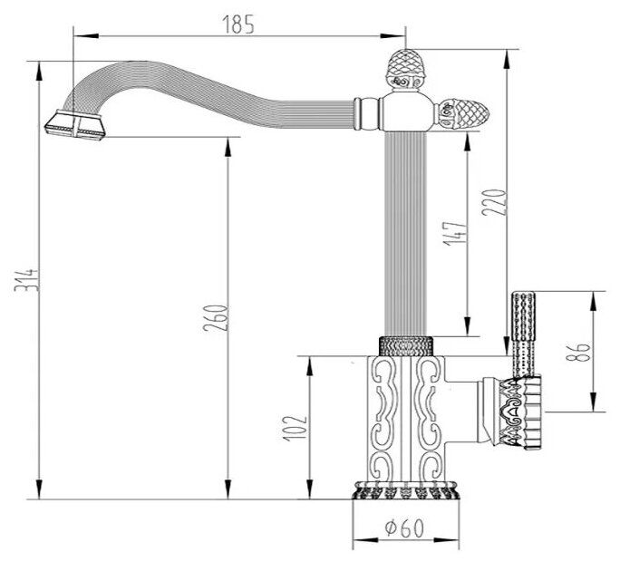 • Высота смесителя: