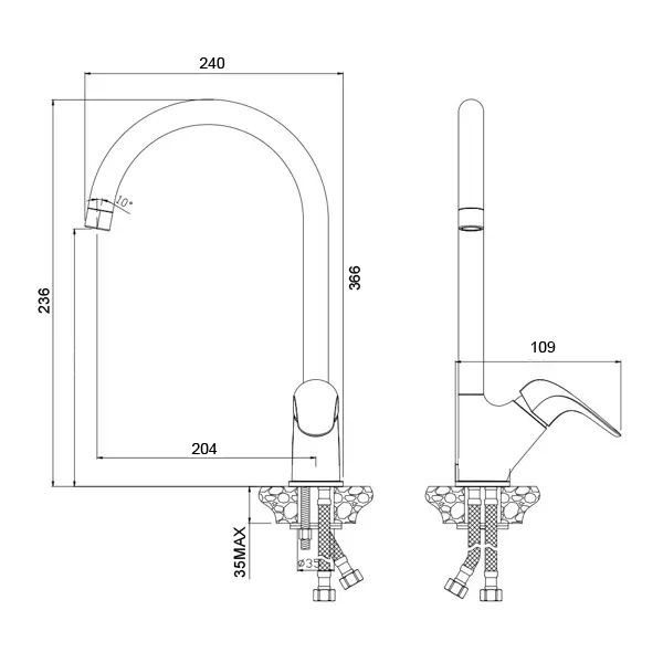 Смеситель для кухонной мойки AZARIO EVORA AZ-WKE56266C керамический картридж