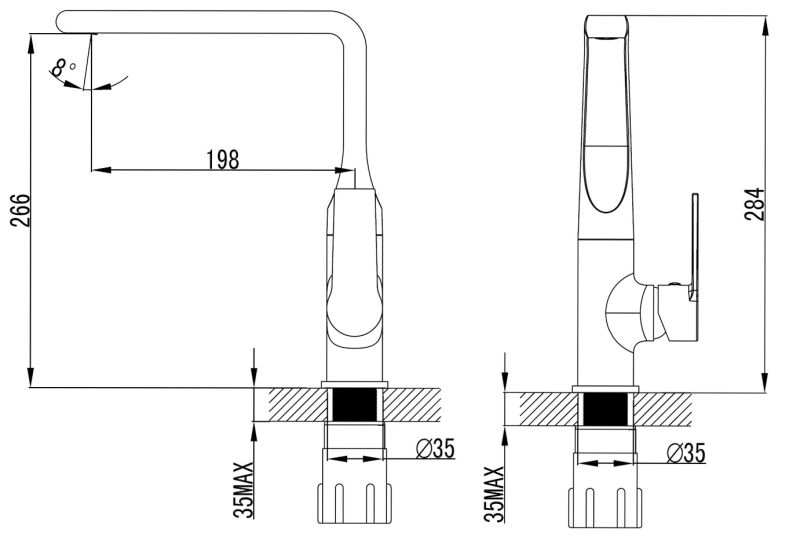- Высота смесителя:28.4