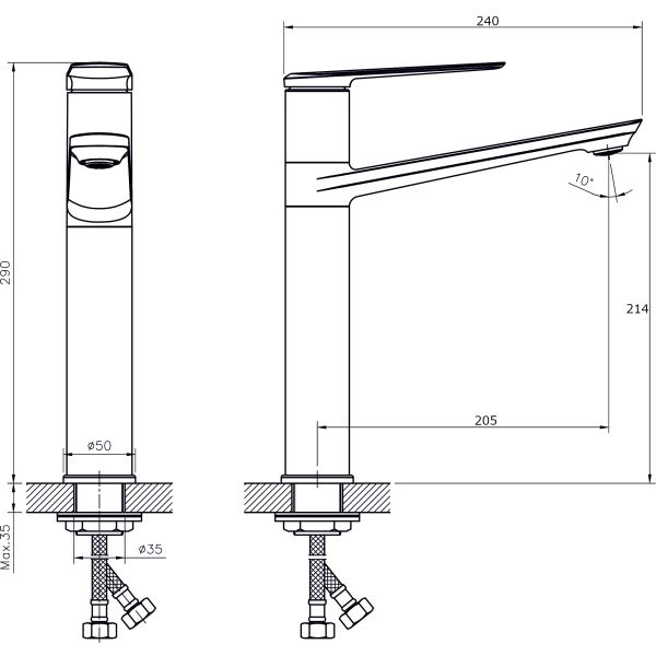 • Высота смесителя: