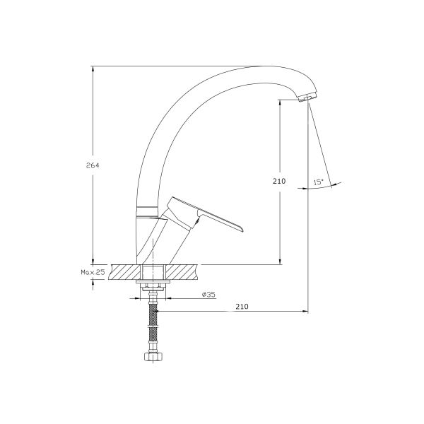 Смеситель для кухни с поворотным изливом RUSH Victori арт.VI7135-22 c металлической ручкой и имеет рычажное управление.В смеситель установлен картридж D-35 (RSH102) с керамическими пластинами. Высота смесителя 250 мм. Излив поворотный 360гр, 210 мм. Высота излива до аэратора 210 мм. Аэратор изготовлен из пластика с нержавеющим корпусом, угол наклона аэратора -15 гр.В комплекте гибкая подводка с латунными гайками 35см - 2 шт, присоединительная гайка S-30мм, втулка-27мм, фум-лента, индивидуальный пакет, паспорт, гарантийный талон.