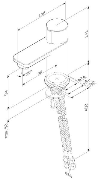 Идеальная геометрия, разработанная по стандарту SA (Smart Angle) – математические выверенное соотношение высоты смесителя, длины излива и наклона корпуса для удобного использования на умывальнике любого размера