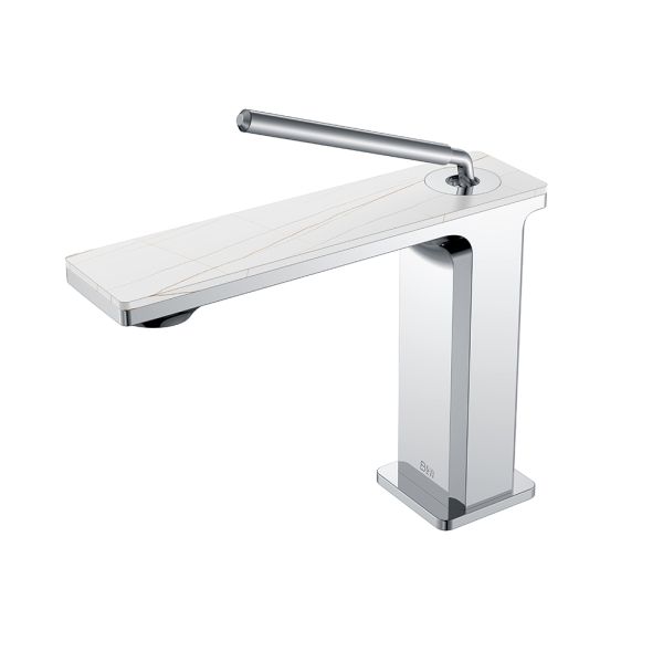 Смеситель для раковины датского производителя Black&White в цвете глянцевый хром. Корпус изготовлен из сантехнической латуни марки HPB 59– безопасного для здоровья сплава с высоким ресурсом. Управление потоком и настройка температуры воды происходит с помощью керамического картриджа повышенной пропускной способности, а на выходе для уменьшения разбрызгивания и экономии воды установлен аэратор. Важная стилистическая особенность — накладка на излив изготовленная из керамогранита с текстурой и рисунком белого мрамора. В формах продукта пересекаются цилиндрические и прямоугольные формы, что гармонично может дополнить концепцию ванной комнаты в экостиле.