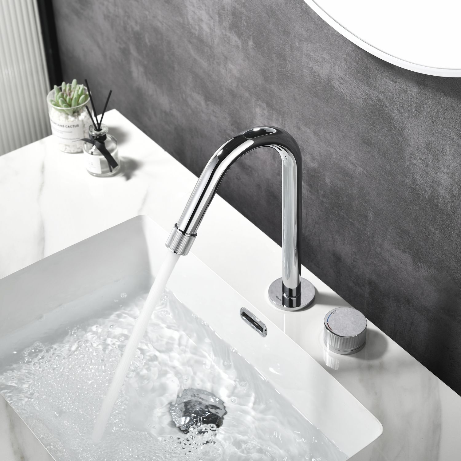 Двухпозиционный смеситель для раковины датского производителя Black&White в цвете глянцевый хром. Изделие выполнено из сантехнической латуни – безопасного для здоровья сплава не подверженного коррозии. Настройка температуры выведена на ручку цилиндрической формы, в которую установлен керамический картридж, монтаж осуществляется сбоку от излива. Настройка давления воды выведена на сам излив в виде кольца с насечками в зоне аэратора. Продукт выполнен в минималистичном стиле и гармонично впишется в Эко интерьеры ванных комнат,а высокий излив удобен в практическом использовании.