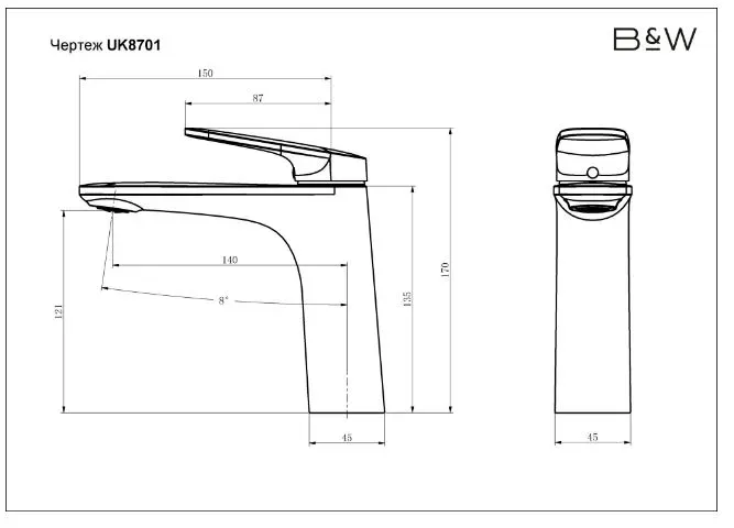 Смеситель для раковины Black&White Universe UK8701C хром купить
