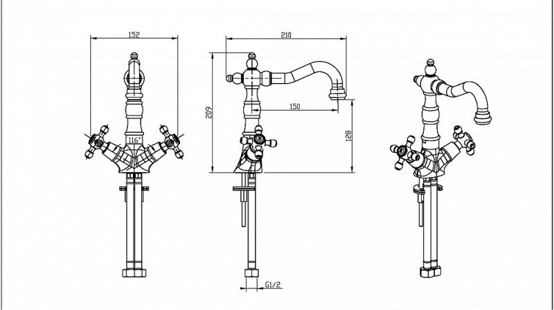 • Высота смесителя: