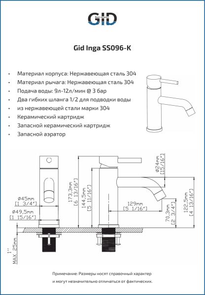 Смеситель для раковины Gid Inga SS096-CH-K SS096CHK хром купить