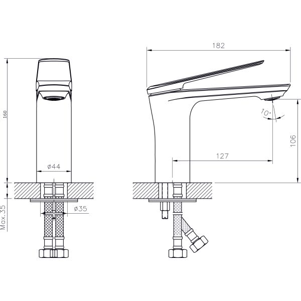 Смеситель для раковины RUSH арт. BE5535-11 с металлической ручкой из коллекции Bering изготовлен из высококачественной латуни и имеет рычажное управление.В смеситель установлен картридж D-35 с керамическими пластинами. Высота смесителя 160 мм. Излив литой, неповоротный, 127 мм. Высота излива до аэратора 106 мм. Аэратор изготовлен из пластика с нержавеющим корпусом, угол наклона аэратора- 10 гр. В комплекте гибкая подводка с латунными гайками 45 см - 2шт, универсальная присоединительная группа для установки на горизонтальную поверхность, фум-лента, индивидуальный пакет, паспорт, гарантийный талон.