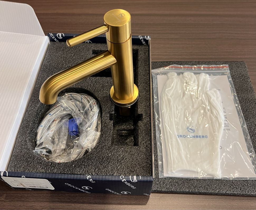 Смеситель для раковины стандартный Grocenberg GB2099GL золотой брашированный купить