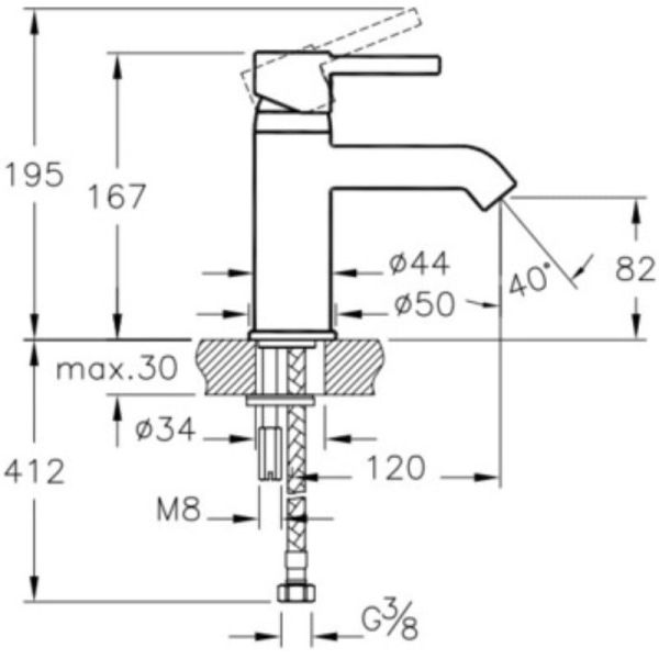 • Высота смесителя: