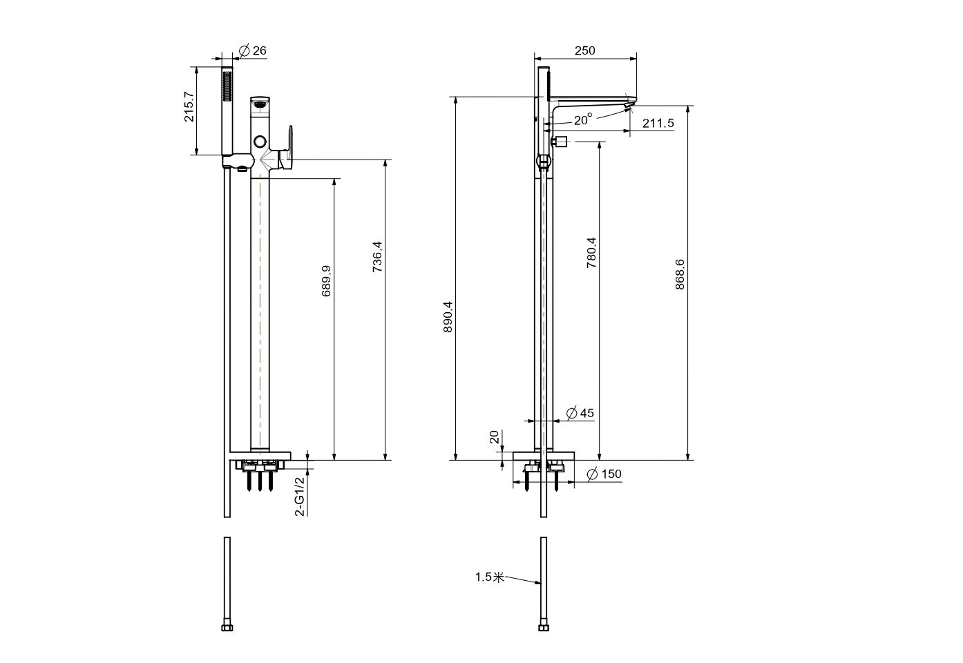 • в комплекте ручная лейка и шланг 1,5м