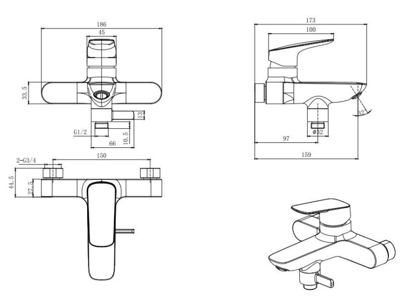 Смеситель для ванны Aquatek Вега AQ1040CR хром