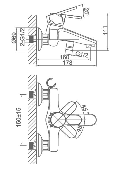 Смеситель для ванны DQ Rhein Marx хром DA1393201