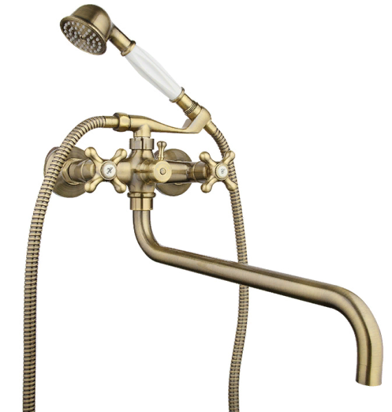 Смеситель для ванны Gappo Sofia G2263-4 - стильная двухвентильная латунная модель с поворотным изливом 35 см. Душевая лейка в комплекте. Цвет - бронза.