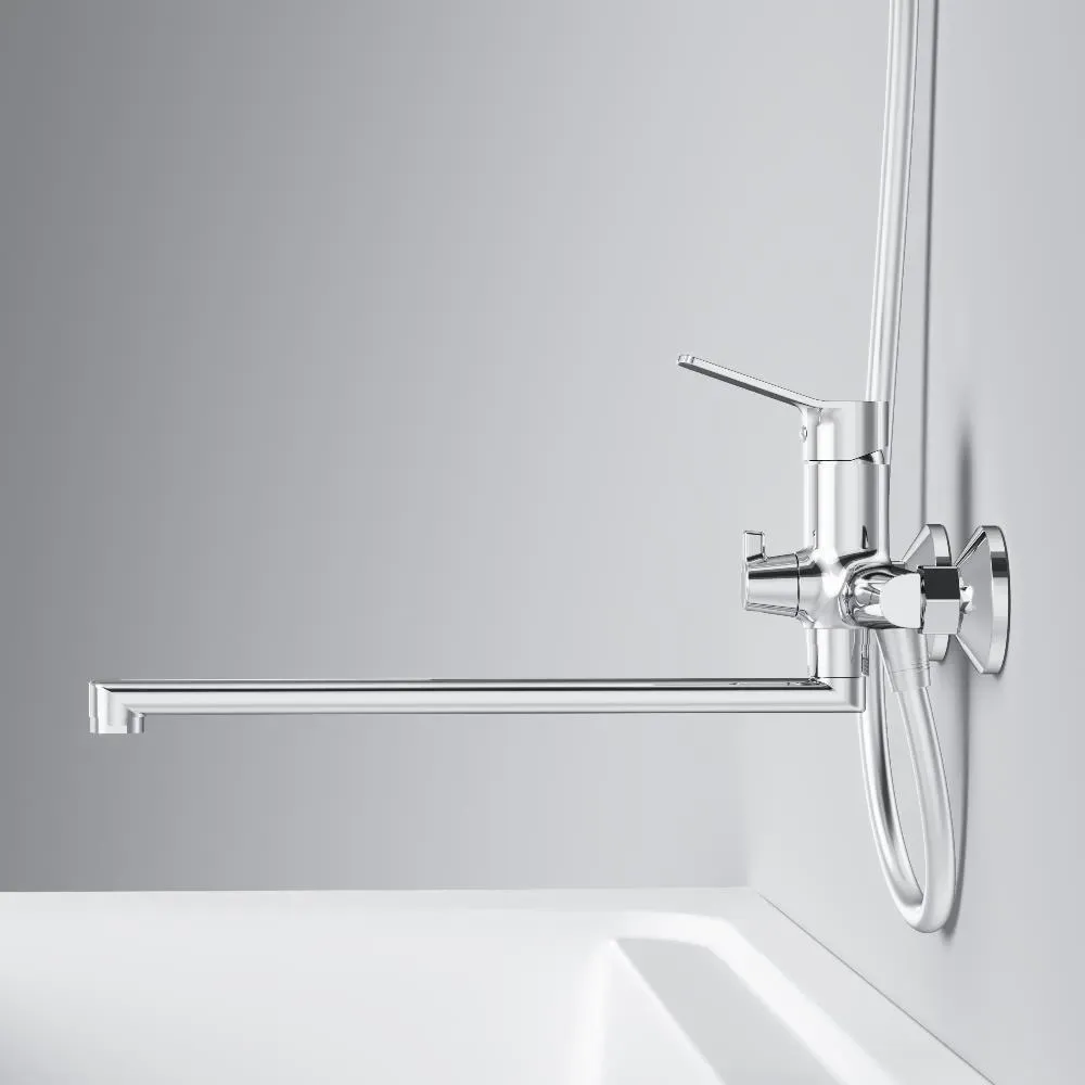 Универсальный длинный излив позволяет использовать смеситель как для ванны так и для рядом стоящей раковины. Поворотный переключатель с излива на ручной душ -максимум комфорта и надежности в использовании.