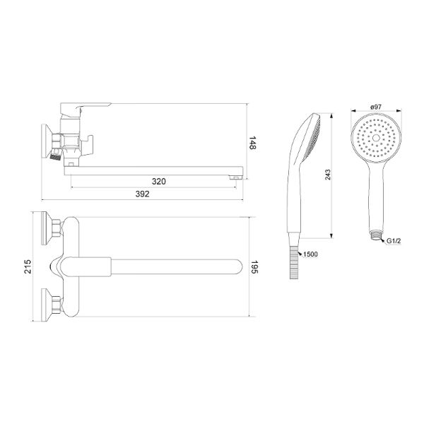 Смеситель для ванны и душа Damixa Apollo 479500000 хром