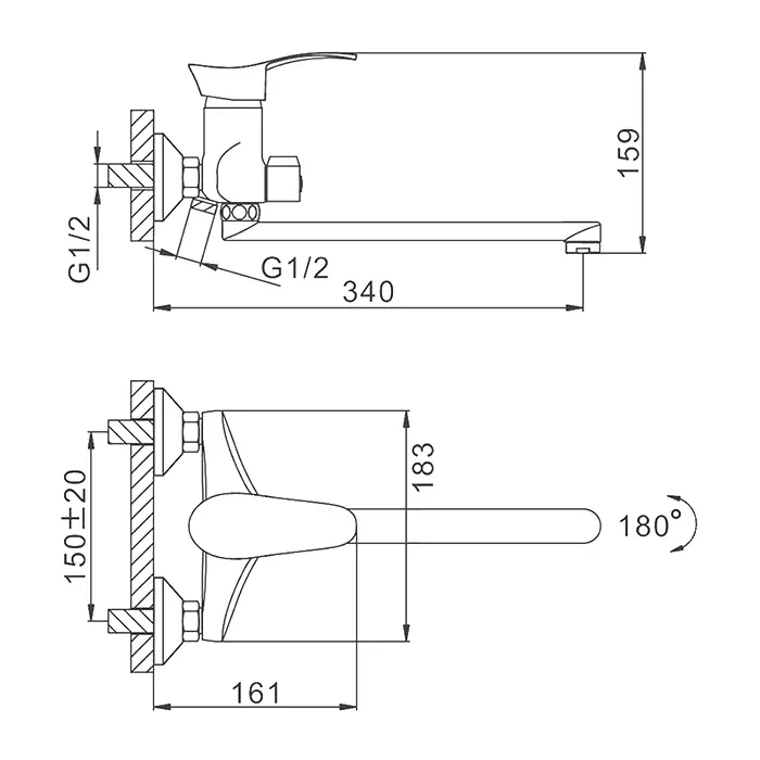 - Длина излива, см:34
