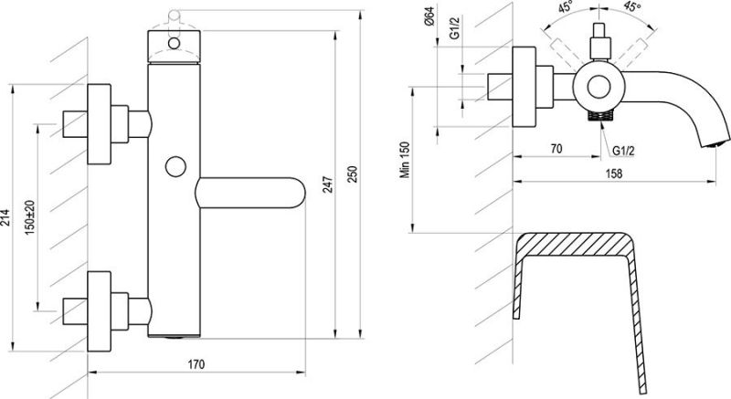 подходит для: всех ванн, стоящих у стены