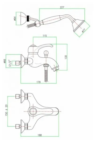 Ручной душ с одним режимом.
