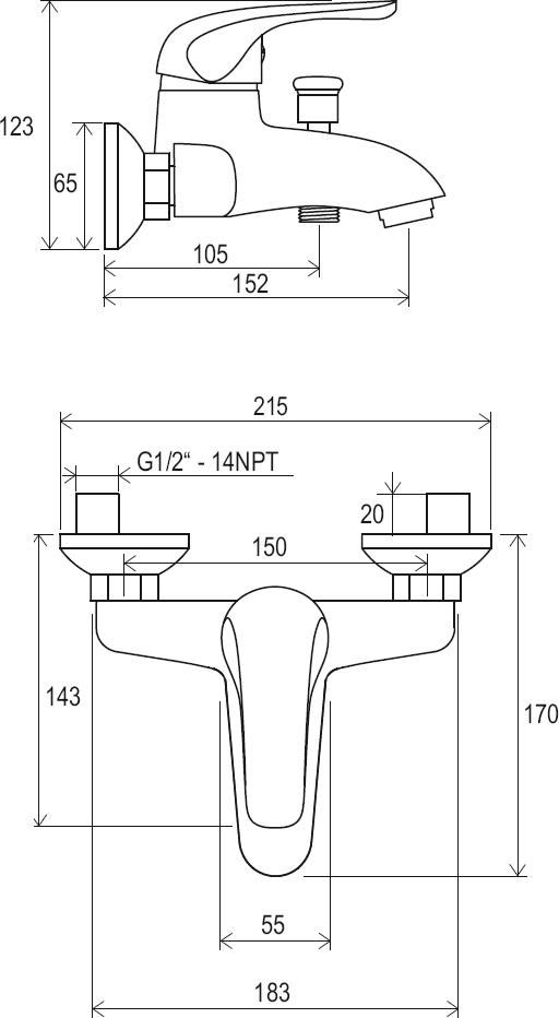 • межосевой размер смесителя : 150 мм