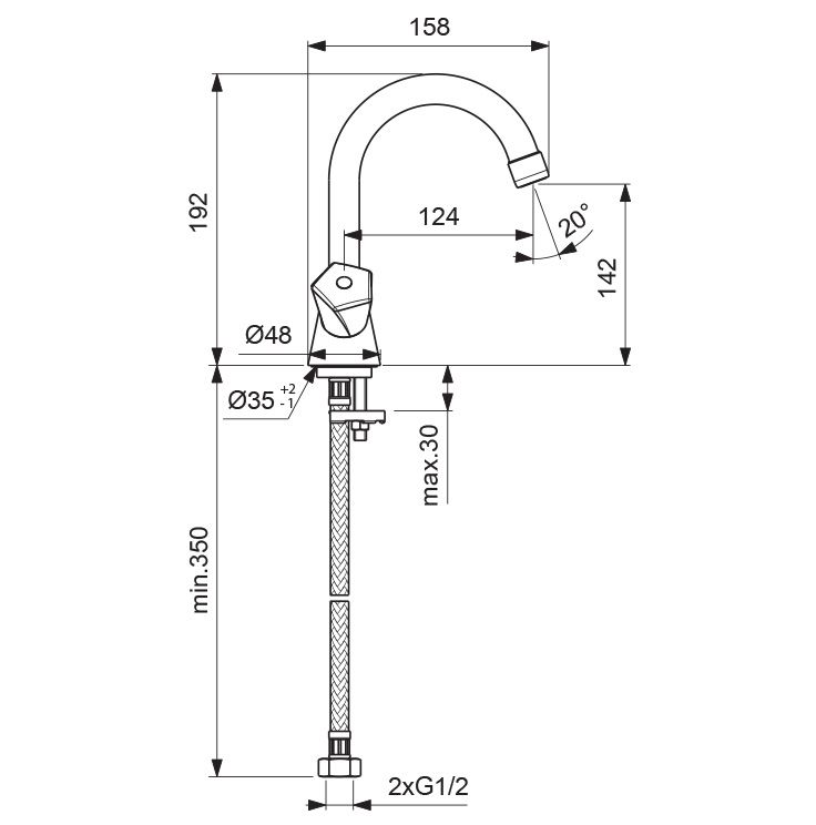 - Высота смесителя:19.2