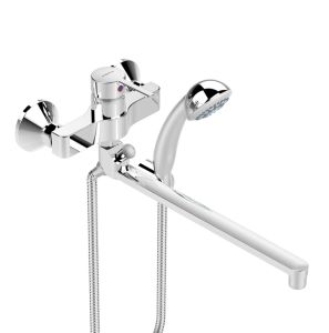 LOGIK Настенный смеситель для ванны/душа, поворотный излив 320 мм, душевой гарнитур в комплекте (лейка 70 мм, метал.шланг 1500 мм, держатель для лейки).