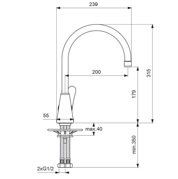 Длина излива, мм: 200