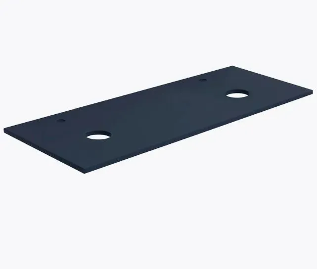 В столешнице Терра предусмотрены 2 отверстия: под слив раковины и под смеситель с установкой на столешницу. Расположение смесителя - за чашей раковины, по центру.