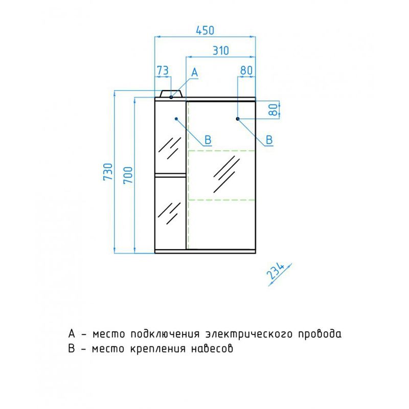 - Тип:зеркало-шкаф с подсветкой