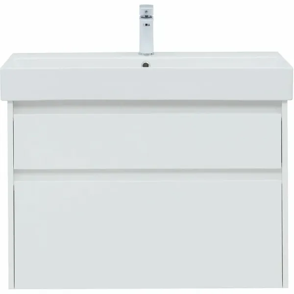 Тумба под раковину в ванную комнату бренда Aquanet выполнена в стиле модерн и входит в нашу коллекцию мебели Nova Lite. Представленная коллекция мебели для ванных комнат осчастливила сотни покупателей, так как они приобрели сочетание дизайна, качества и функциональности. Важный момент при выборе тумбы для умывальника / раковины - это материалы. Они должны быть адаптированы к эксплуатации в условиях повышенной влажности. Влагостойкий ЛДСП - материал, из которого выполнен корпус изделия, фасад - из влагостойкого ЛДСП. При монтаже напольной/подвесной тумбы в первую очередь необходимо учесть ширину, которая равна 82 см. Тумба в цвете белый (белый глянец) освежит Вашу ванну и будет отлично сочетатся с сантехникой. Тумба в ванную также обеспечит вам экономию места, так как в ней предусмотрены вместительные ящики, оснащенные механизмом доводчика.