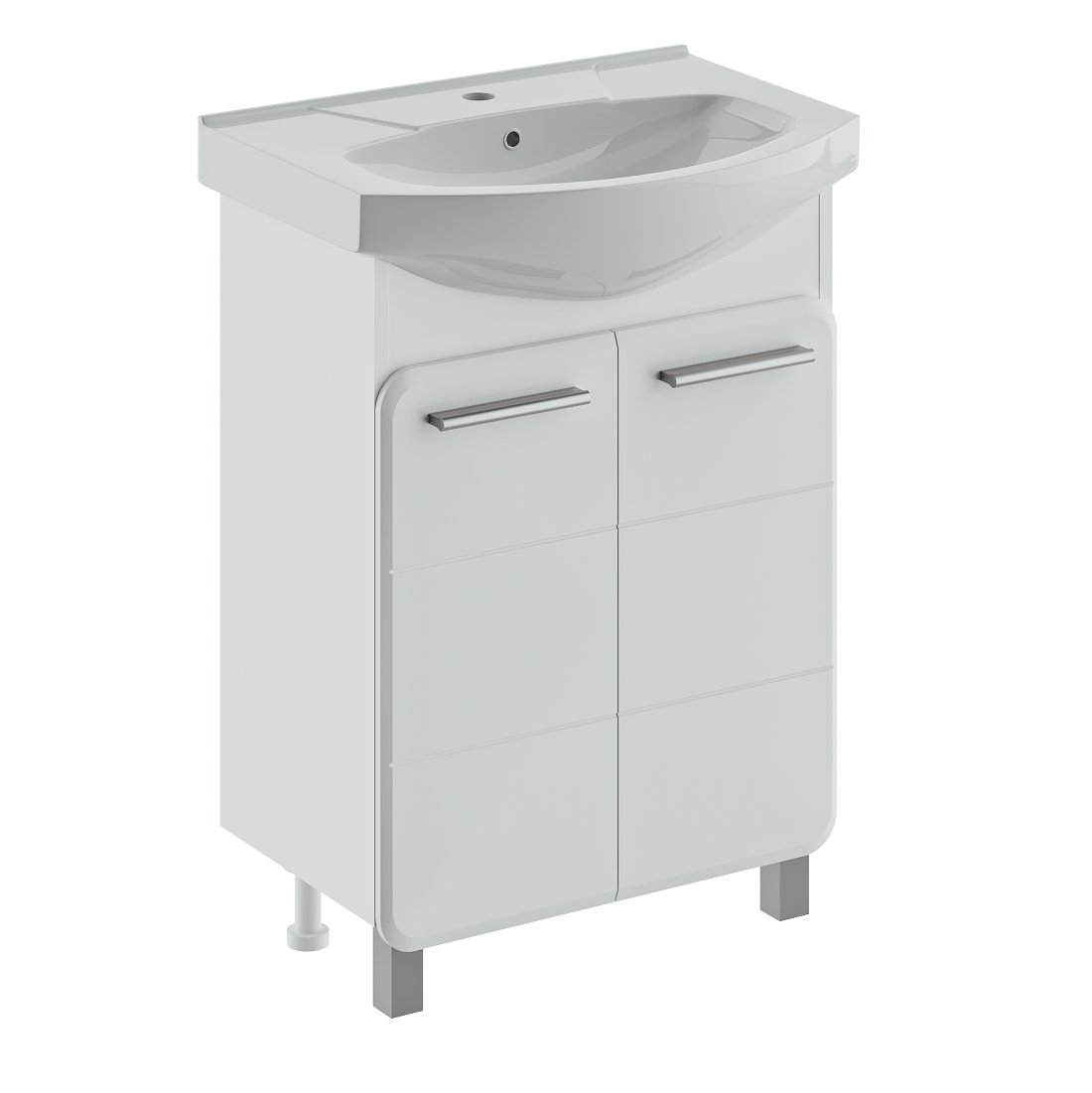 Тумба под раковину ЭРИКА - современный и стильный дизайн в оформлении ванной комнаты. Тумба под раковину ЭРИКА (напольная), выполненная в белом цвете с глянцевым покрытием, инкрустированная квадратной фрезеровкой на фасадах, превосходно украсит любой интерьер ванной комнаты. Тумба в ванную комнату имеет две распашные дверцы и одну встроенную полку. В комплекте к тумбе идут 2 ручки, петли со встроенным доводчиком, 2 хромированные и 2 пластиковые ножки. Мебель для ванной RUNO - красота и практичность в мелочах!