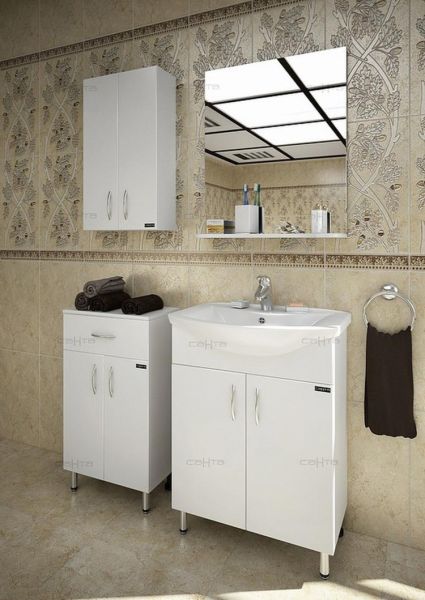 Тумба СанТа отлично подойдет как для просторной ванной комнаты, так и для небольшого помещения. Напольный способ установки производится непосредственно на пол, при этом конструкция максимально устойчива при серьезных физических нагрузках.В производстве используют только качественные влагостойкие материалы (ВЛДСП), в составе которых полностью отсутствуют опасные вещества. Серия отличается превосходным дизайном с соблюдением всех ключевых элементов современного стиля. Основным цветом, в котором выполнена тумба СанТа является белый, гармонирующий с большинством интерьерных решений. Тумба предусматривает удобную и вместительную систему хранения, состоящую из дверей, ящиков. Качественные доводчики позволяют обеспечить мягкое и тихое закрывание.Страной бренда СанТа является Россия, все товары производятся с выполнением соответствующих стандартов качества, что позволяет быть полностью уверенными в долговечности и надежности. Тумба СанТа правильный выбор в современном дизайне ванной, придающий уникальность всему помещению, при этом сохраняя функциональность.
