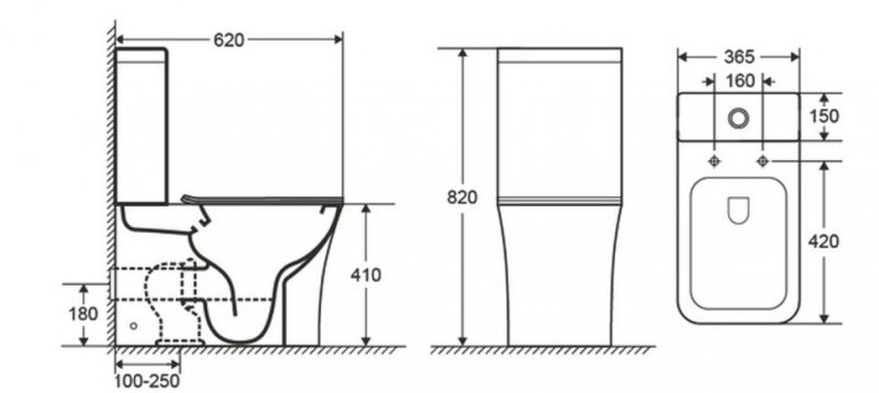 - Прилегание унитаза к стене:вплотную