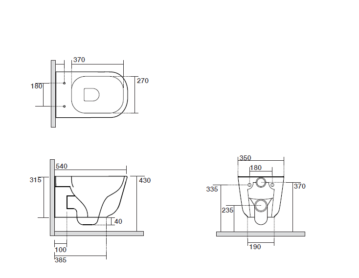 • Прилегание унитаза к стене: