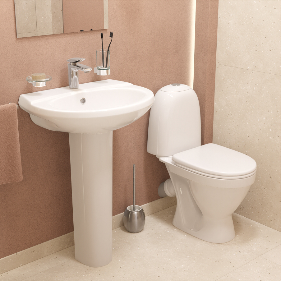 Сбалансированные формы отличают дизайн коллекции ВИКТОРИЯ. Округлые линии бачка унитаза-компакта поддерживаются плавными линиями чаши умывальника.