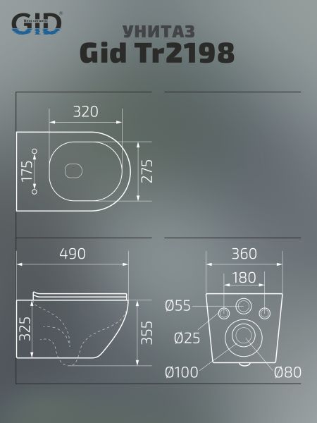 Унитаз подвесной Gid Tr2198 61107Y белый 49x36x35.5