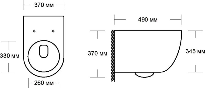 - Прилегание унитаза к стене:вплотную