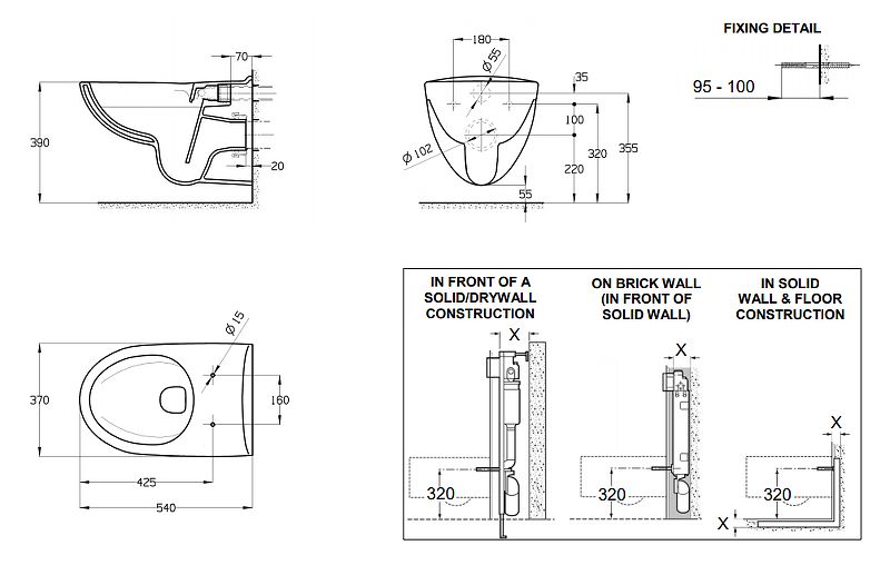 • Прилегание унитаза к стене: