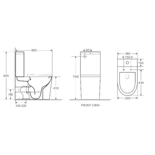 • Прилегание унитаза к стене: