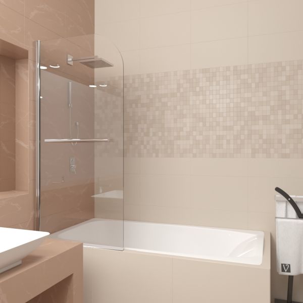 Неподвижная панель крепится пристенной штангой из нержавеющей стали