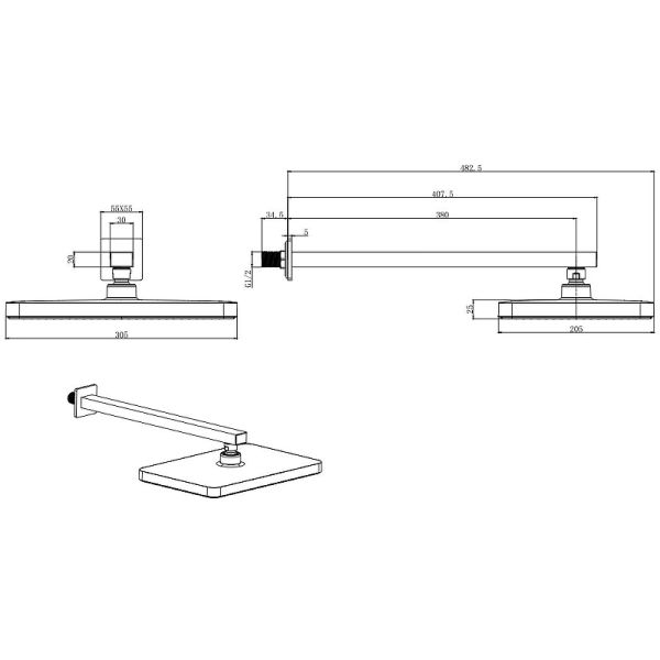 Размер верхнего душа (ШхД): 305х205 мм.
