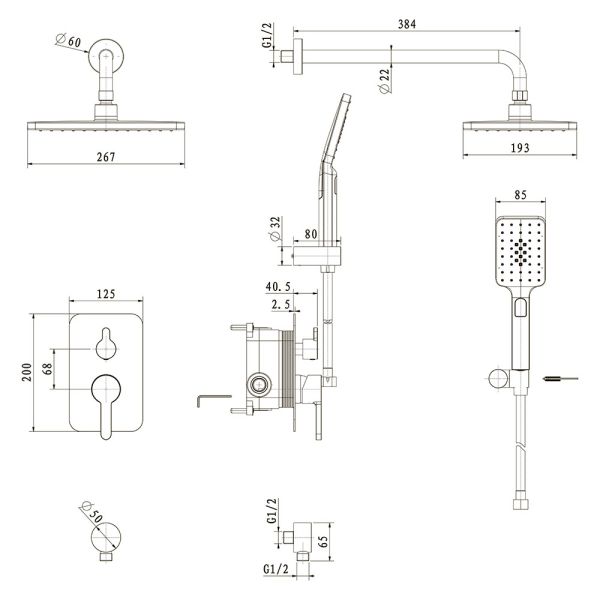 Встраиваемая душевая система VERONA, Графит брашинг