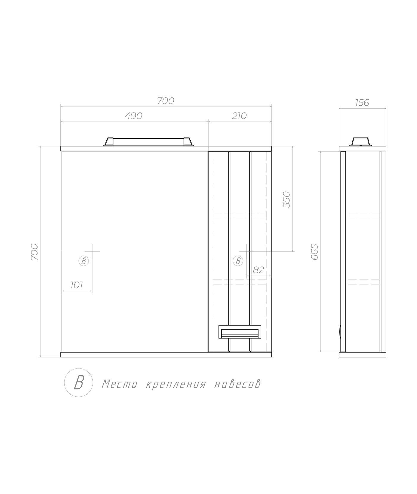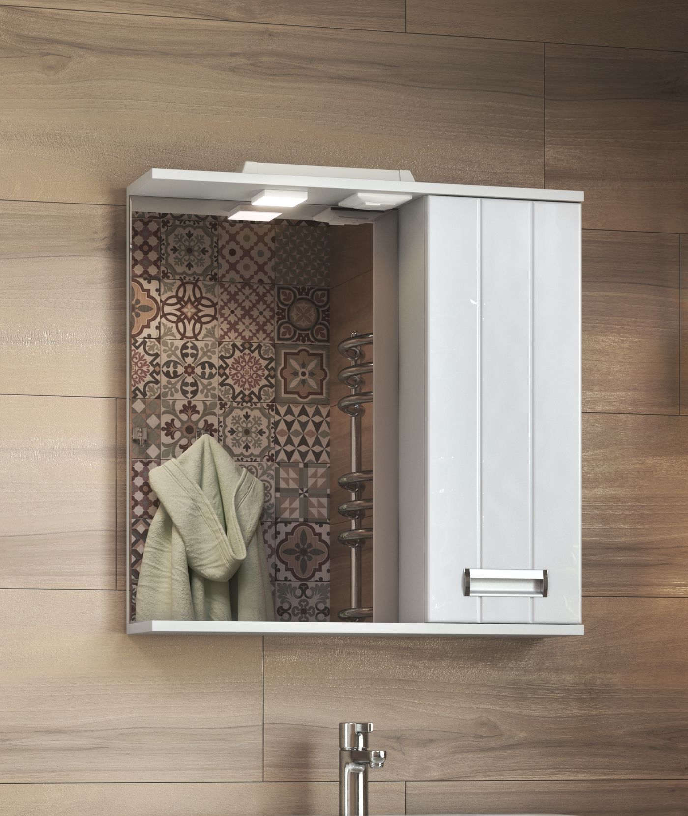 Оснащение: 1 дверца; 2 полки ЛДСП; ручка металлическая хромированная; 1 светодиодный светильник, включатель с розеткой